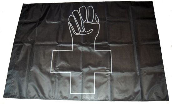 Fahne "Anarchist Black Cross" aus speziellem, leichtem Fahnenstoff mit Tasche als Halterung für die Fahnenstange